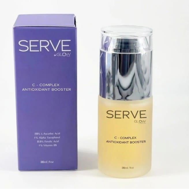 SERVE C-Complex Antioxidant Booster is a meticulously crafted fusion of 17 of the world’s most powerful antioxidants, designed to awaken your skin’s natural brilliance, restore its strength, and extend its youthful vitality.
